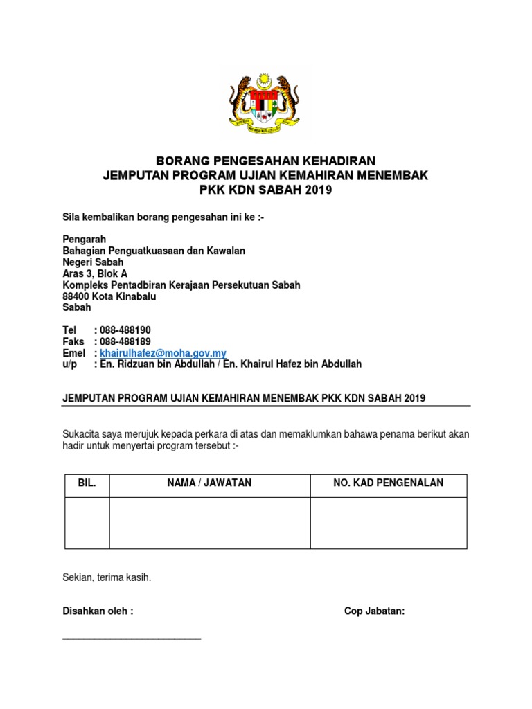 Gunakan templat semua tahun ini untuk melacak laporan waktu dan absen karyawan. Borang Maklum Balas Tuan PENGESAHAN KEHADIRAN KE KARNIVAL SEHARI BERSAMA WARGA SKKS 2016 Dengan hormatnya merujuk kepada perkara di atas. Universiti malaysia sarawak human capital.